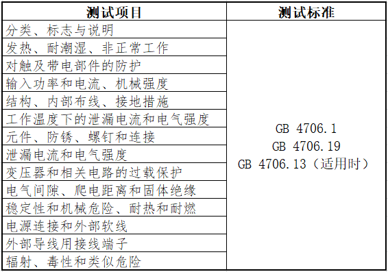 测试项目与标准